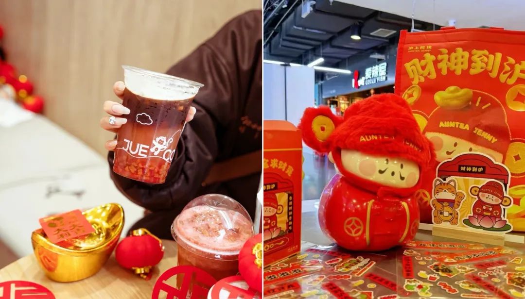 茶饮、咖啡品牌借助财神元素做营销,赋予一杯饮品吉祥寓意,能为消费者带来讨个新年好彩头的情绪价值。