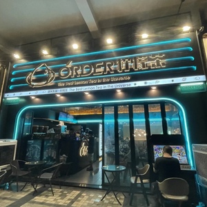 整体而言,ORDER柠檬茶并不是运营高度成熟的那类品牌。其小红书账号在2023年10月才发布第一条帖子,至今该品牌都没有官方公众号。在大众点评评论中,ORDER柠檬茶更像是广州年轻人聚会的落脚地,面积较大的门店均设置了多个座位,还有转播游戏视频的大屏幕,有的甚至能在现场唱k,营业时间从白天的10点直至晚上12点。