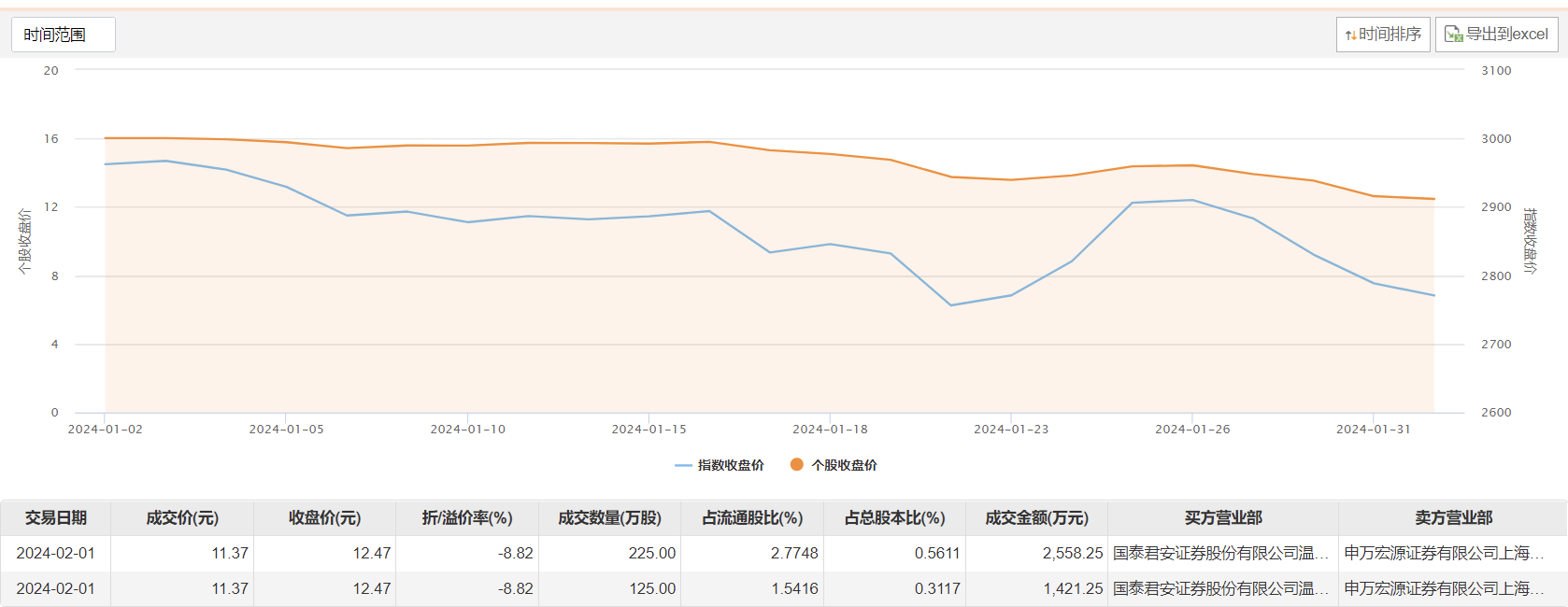 2月1日,万控智造今日大宗交易成交350万股,成交额3979.5万元,占当日总成交额的61.25%,成交价11.37元,较市场收盘价折价8.82%。