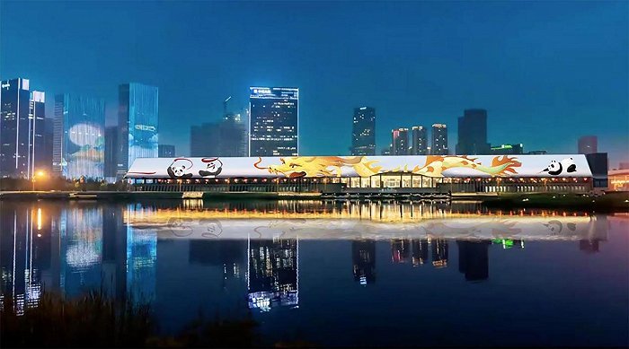 春节期间将开展天府之檐主题光影秀,以太阳神鸟、熊猫、川剧等天府文化元素和灯笼、烟花、神龙等新年元素为主要视觉素材,为广大市民群众呈现具有科技前沿感、国际时尚范、天府文化味的新春视觉盛宴。