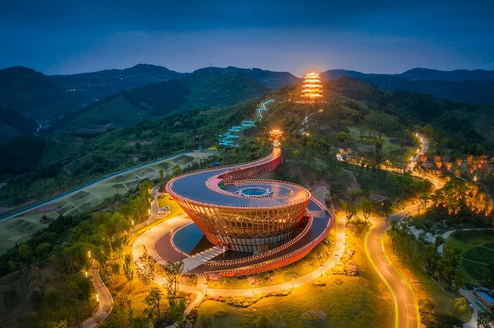 天府国际会议中心位于天府新区总部商务区,按照“世界水准、大国风范、川蜀特色、成都元素”标准打造,以唐代斗拱型制为蓝本,是亚洲最大胶合木单体建筑、全国最长连续瓦屋面建筑。