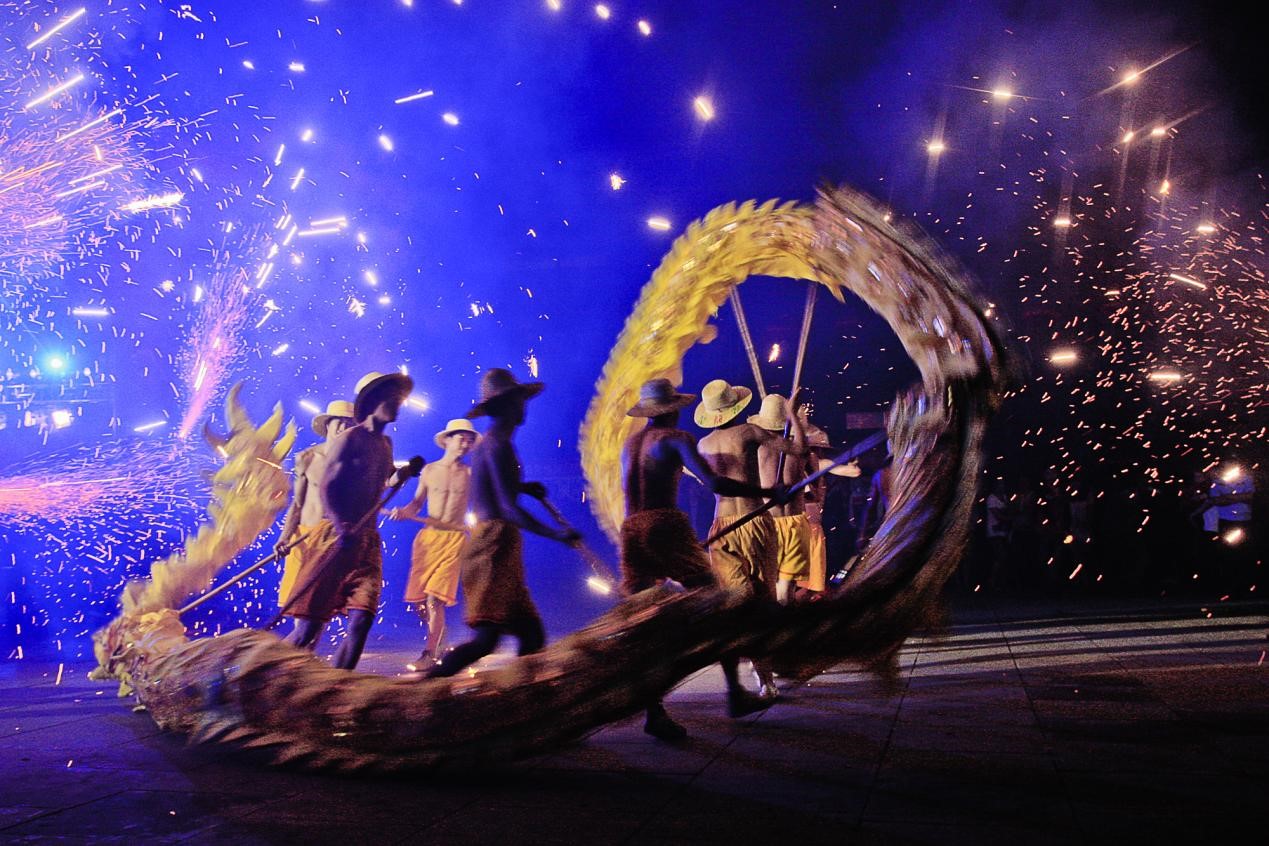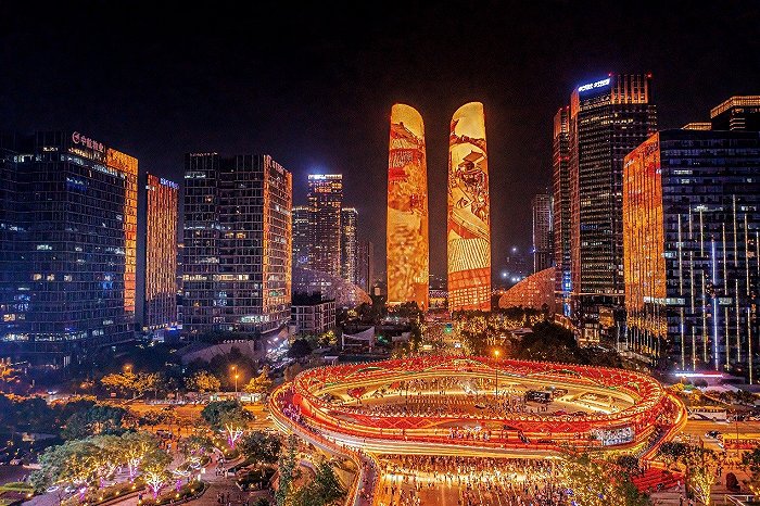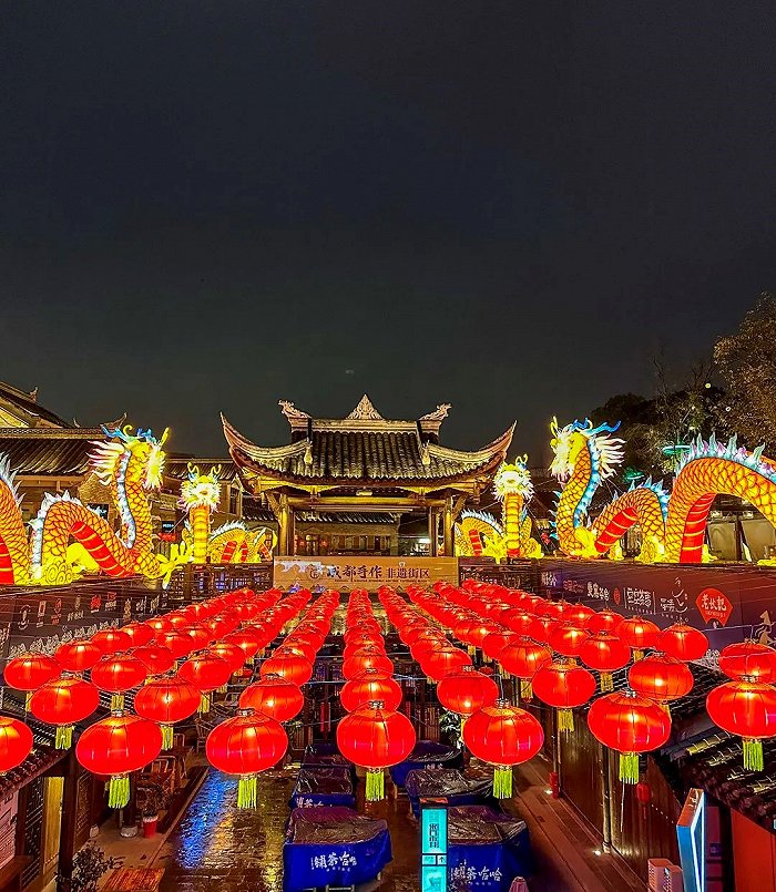 天府之檐亮灯仪式、非遗舞龙铁花秀、无人机表演、湖畔千家团年饭(2月9日)