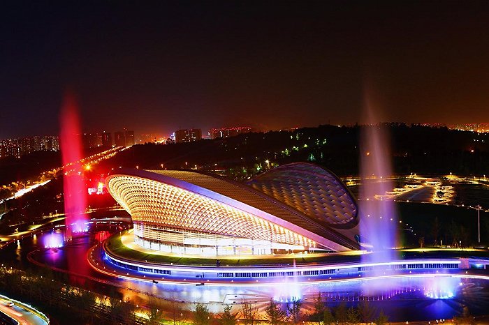 成都露天音乐公园是国内顶级露天音乐演艺场地及城市音乐主题公园,也是第31届世界大学生夏季运动会的闭幕式场馆。主体建筑安装立面光彩,通过不同色彩、图案造型照亮场馆轮廓,凸显出音乐剧场的磅礴大气。音乐公园与对面20栋居民楼宇景观照明以及三环路上的凤凰立交、金凤凰立交景观光彩遥相呼应,营造出绚丽迷人的夜景氛围。