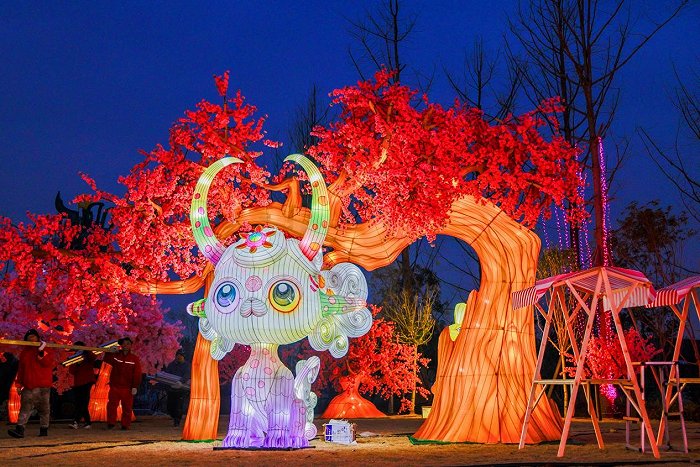 “龙宝迎新”“国宝闹春”“花开海棠”灯组等民俗灯会节。