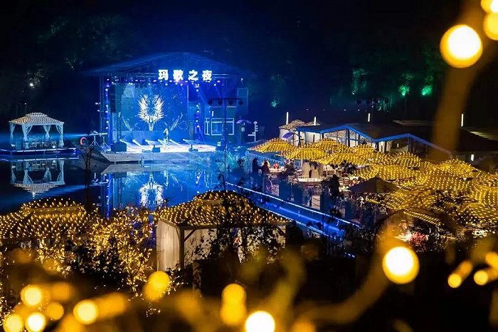 玛歌庄园以川西民居和中式园林景观风格为本底,以山水禅意景观文化为主题,通过围湖、坡地等场景打造,营造高低错落景致。沿湖融入树屋、船屋等建筑形式,配置大型激光音乐喷泉、威亚索道、表演舞台。进入园区的游客,每一拍都是打卡、每一步都是融入、每一餐都是享受,充分感受与环境一体的浸入式体验。玛歌庄园深度挖掘音乐文化、火锅文化、熊猫文化,真正实现音乐沸腾、火锅沸腾、文化沸腾内涵,不断创新旅游发展新模式,成为成都市最具代表性的一张音乐火锅名片。