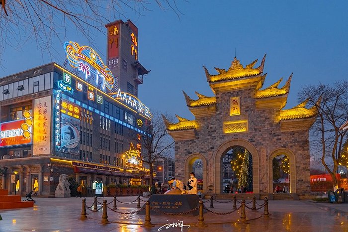 锦门紧扣建设丝绸之路经济带的国家战略,以成都北大门为依托,以南丝绸之路文化为核心,以成都百年商业、公馆建筑为底卷再现老成都繁华记忆,是中国首家打造以“丝绸文化”为背景的,集文化、旅游、购物、美食和休闲为一体的,多产业互动发展的丝绸商贸旅游小镇。景区由南丝绸之路起点纪念广场、四川丝绸博物馆、“南丝路”商贸旅游博展街区、南丝绸之路纪念公园、锦门民国风情街区等组团构成,将栽桑养蚕之趣、缫丝织绸之乐、人文景观之美、商贸旅游之兴有机融合,形成丝绸文化的传播展示中心、高端丝绸产品的时尚消费中心、丝绸产业的体验互动中心,是中国丝路重镇——成都的重要标志之一。