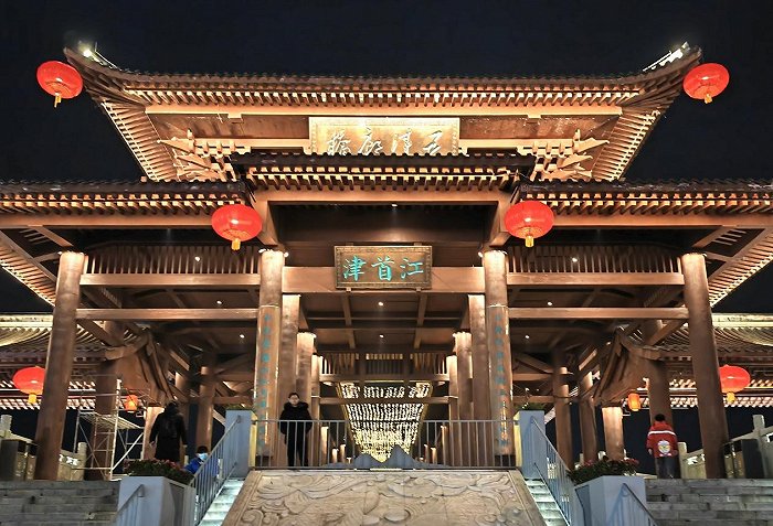 东门码头至廊桥段,打造“夜展、夜秀、夜游”三大主题场景,绘制出老成都、蜀都味、国际范的生活美学地图。在锦江两岸河堤设计多功能的装置艺术,白天作为景观艺术装置,静态讲述锦江璀璨的文化。乘船夜游,游客对锦江沿岸影像与光彩变化的进行沉浸式体验,菩提声光秀、曲艺坝坝茶、码头故事、十二月市、十二月花、合江亭帆船秀,动态展示门泊东吴万里船和花重锦官城的优美画卷。