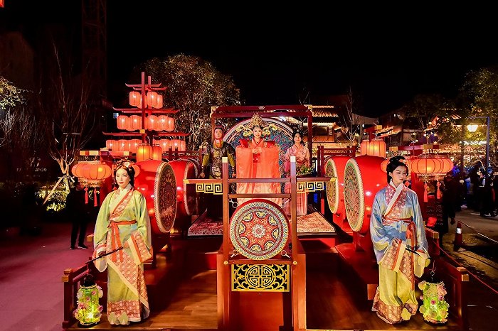 新春欢乐集市、龙年猜灯迷、“唐风蜀韵我最潮”抖音大赛进行时、汉服秀打卡拍照、文娱演出、万人吃汤圆共度元宵节