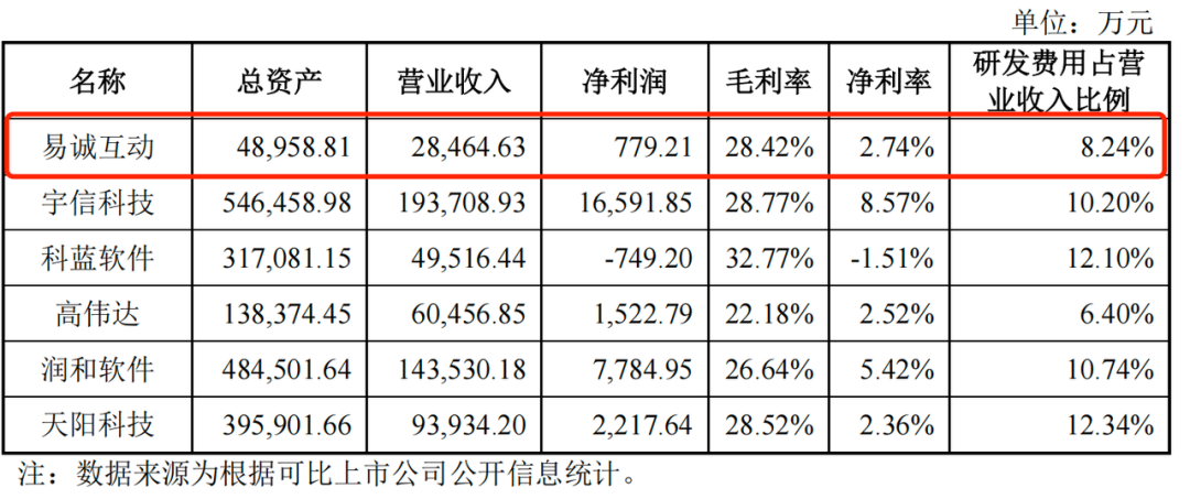 因此,易诚互动若想要做大做强,提高研发创新能力是必不可少的,而与同行公司的差距,也可能成为易诚互动IPO路上的阻碍。