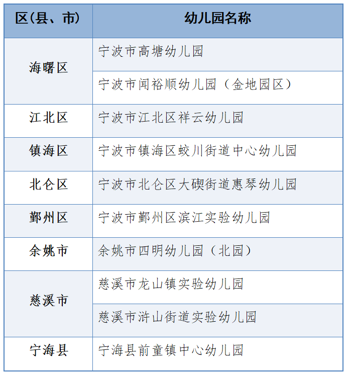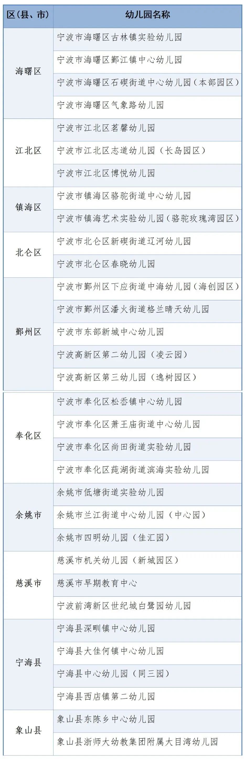 2023年浙江省一级幼儿园复核通过名单(宁波10所)