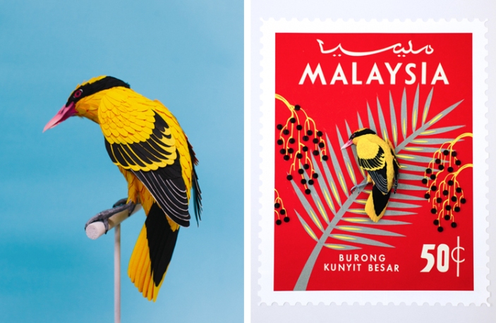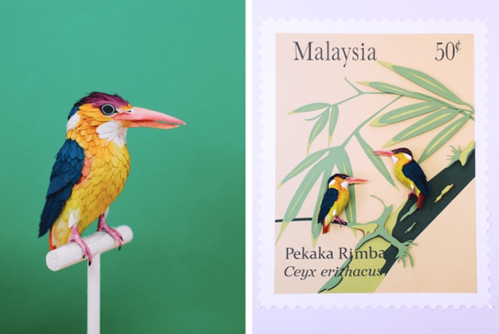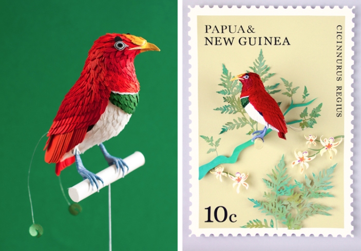 戴安娜·贝尔特伦·埃雷拉通过纸艺邮票,赞美了世界各地的鸟儿。