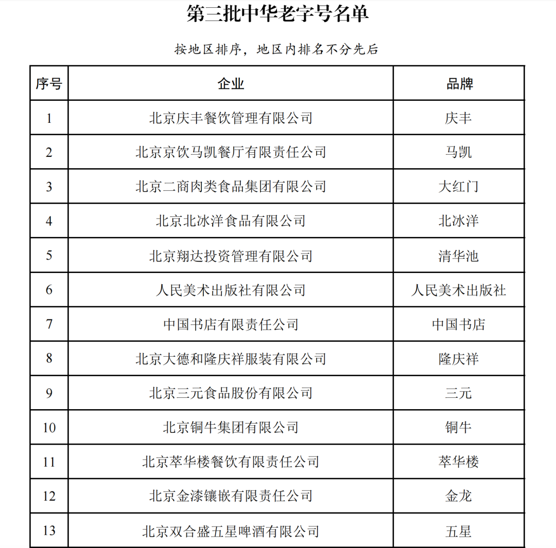 图片来源:第三批中华老字号名单截图