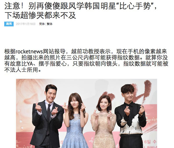 手指比心在国内被大部分人认识,是因为韩国艺人黄致列。▼