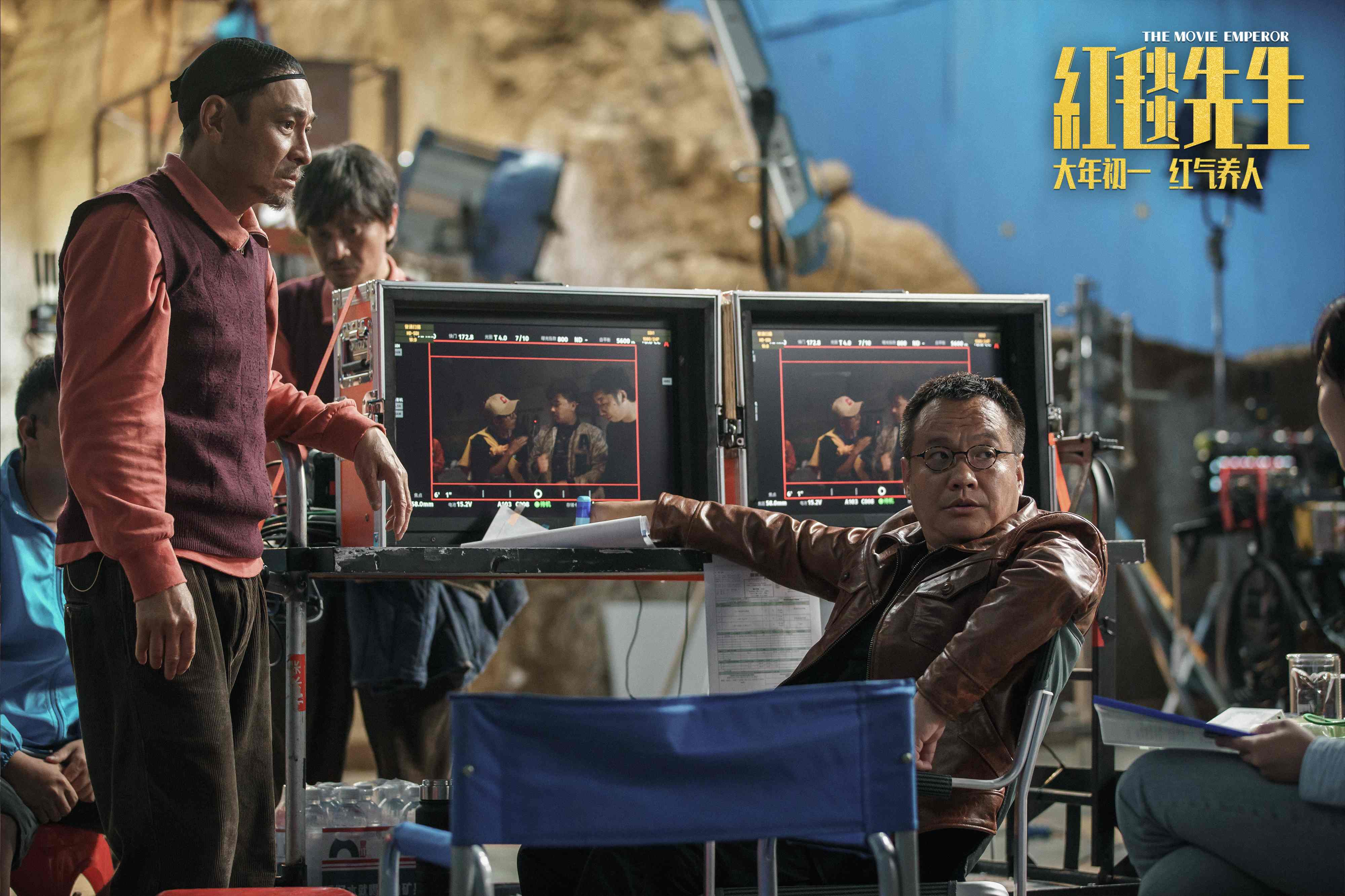 我们罕见地在中国的电影银幕上看到电影的“第四面墙”被打破,从电影行业“局内人”的视角出发,观察电影工业运作流程中的种种细节:棚景如何将演员瞬间拉入黄土高坡的窑洞,摄影棚现场的种种调度和突发情况,坐在摄影机后的导演(饰演这位内地导演的正是宁浩自己,这进一步模糊了戏剧与真实的边界),特殊材料制作的玻璃瓶如何在一碰即碎的同时展现出打戏的紧张气氛……