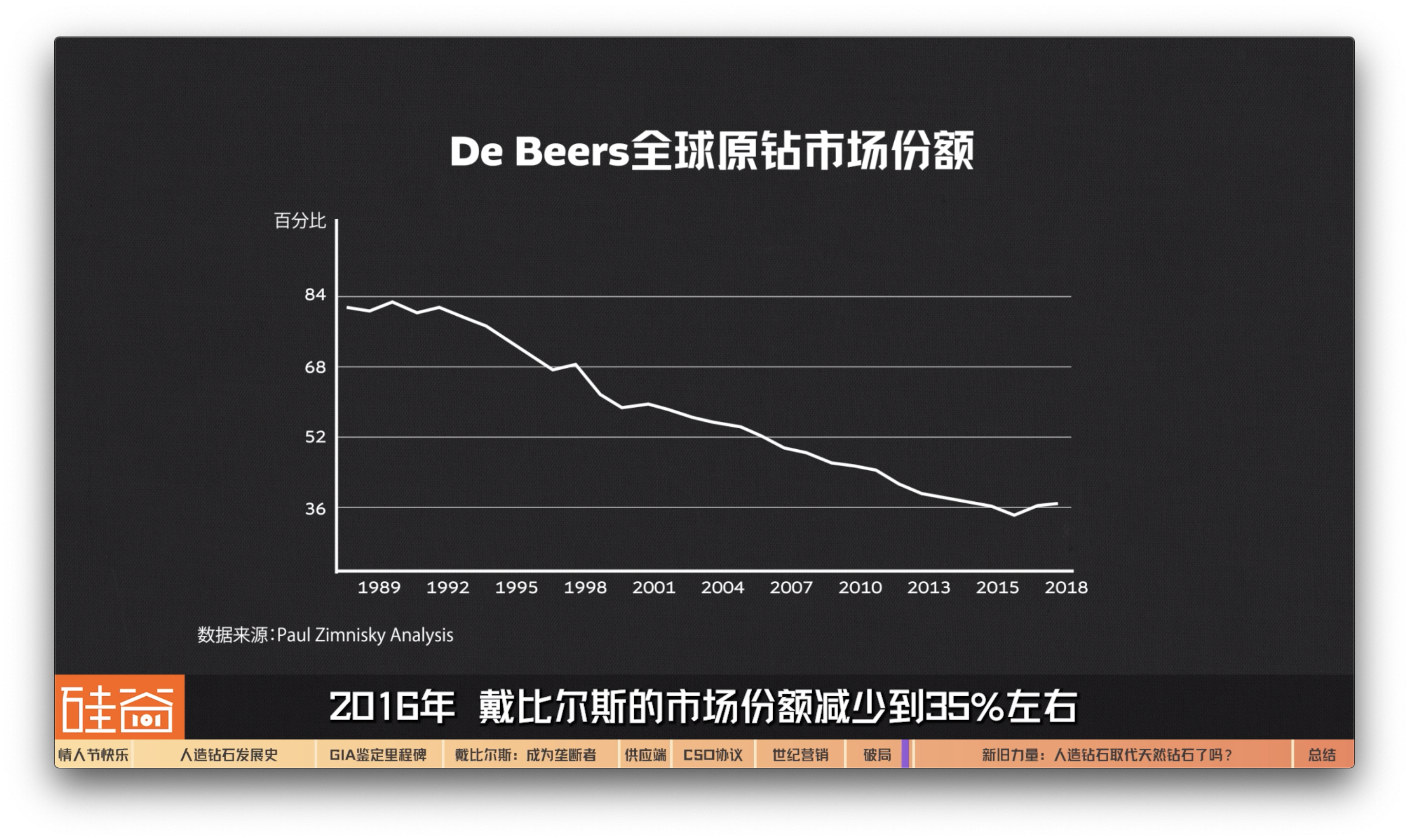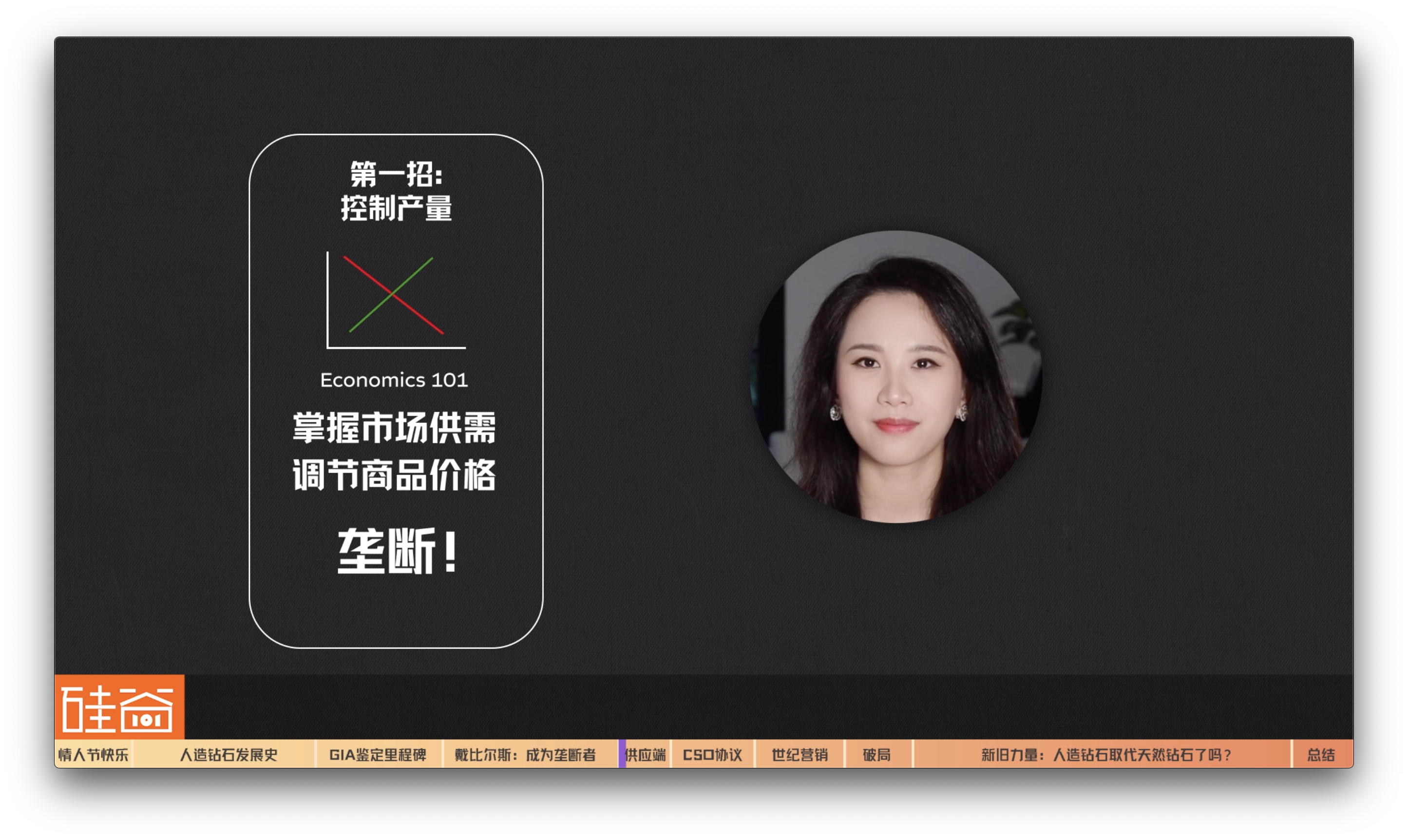 就像拥有十多个成员国的欧佩克组织对于石油价格来说,大家看新闻每次欧佩克组织开会要减产或者增产,都能直接对油价有非常巨大的影响。而在钻石市场,戴比尔斯这一家公司,就相当于欧佩克组织。