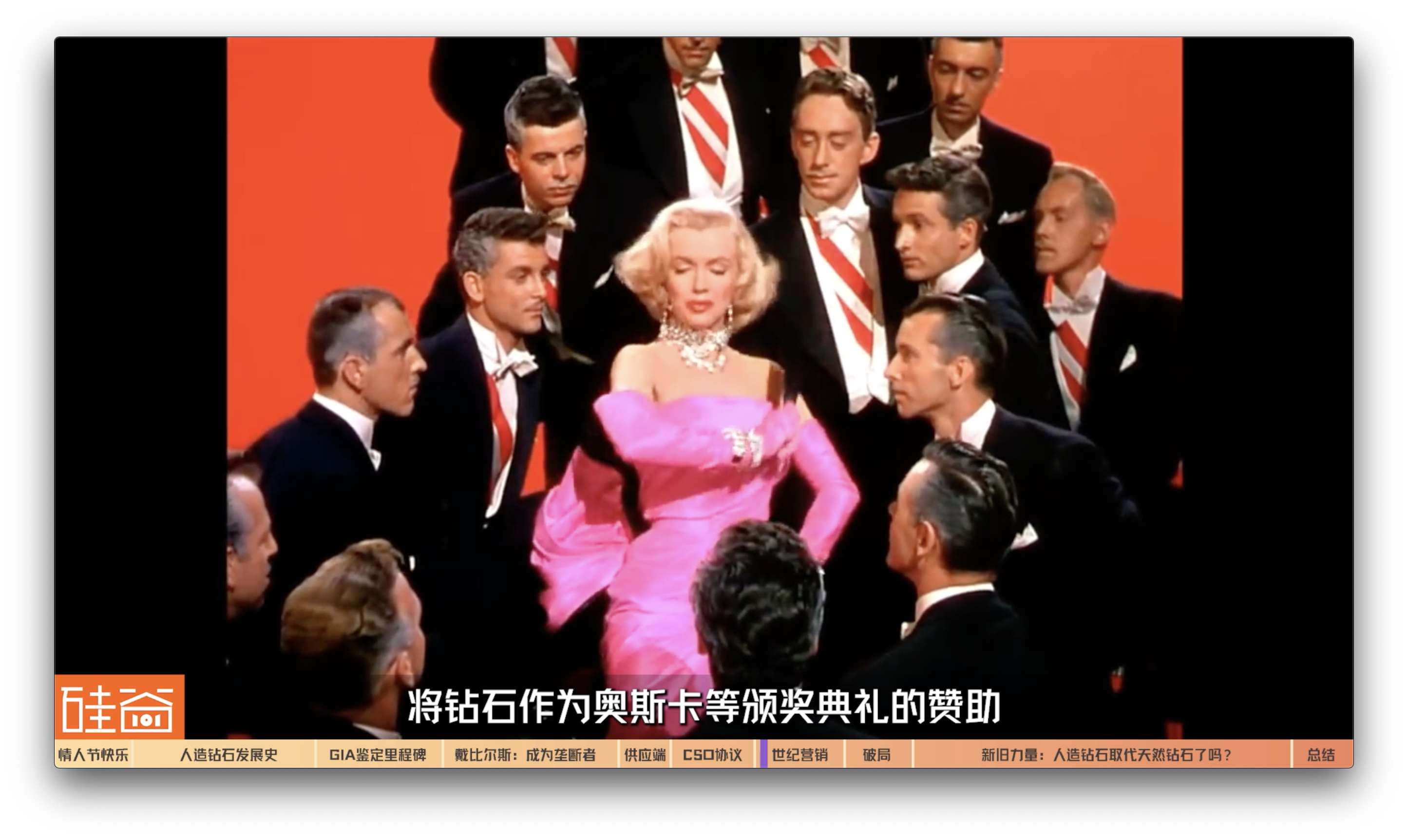 于是在1948年,”A Diamond is Forever”,翻译过来就是大家熟知的““钻石恒久远,一颗永流传” 广告系列开始被大范围推向市场,在广告和各种电影中,男士购买钻石送给喜极而泣、沉浸在爱河中的心仪女性,由此,爱情这个人人都向往的无价之宝与有价的钻石,强绑定在了一起。