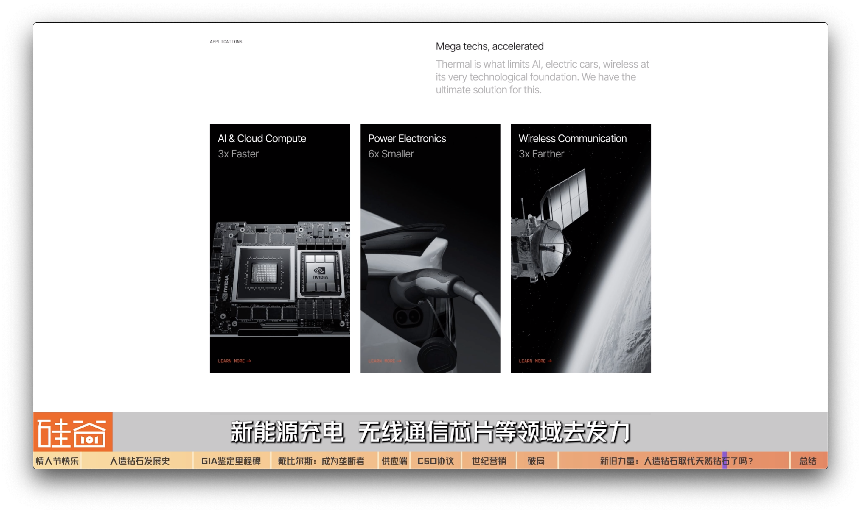类似的,小李子莱昂纳多·迪卡普里奥在2005年拍完《血钻》之后投资的人造钻石公司Diamond Foundry也从早期的培育珠宝级钻石转型改为了培育高精制造工业级钻石,包括AI和云计算芯片,新能源充电,无线通信芯片等领域去发力,而他们的网站主页一句未提珠宝钻石培育。