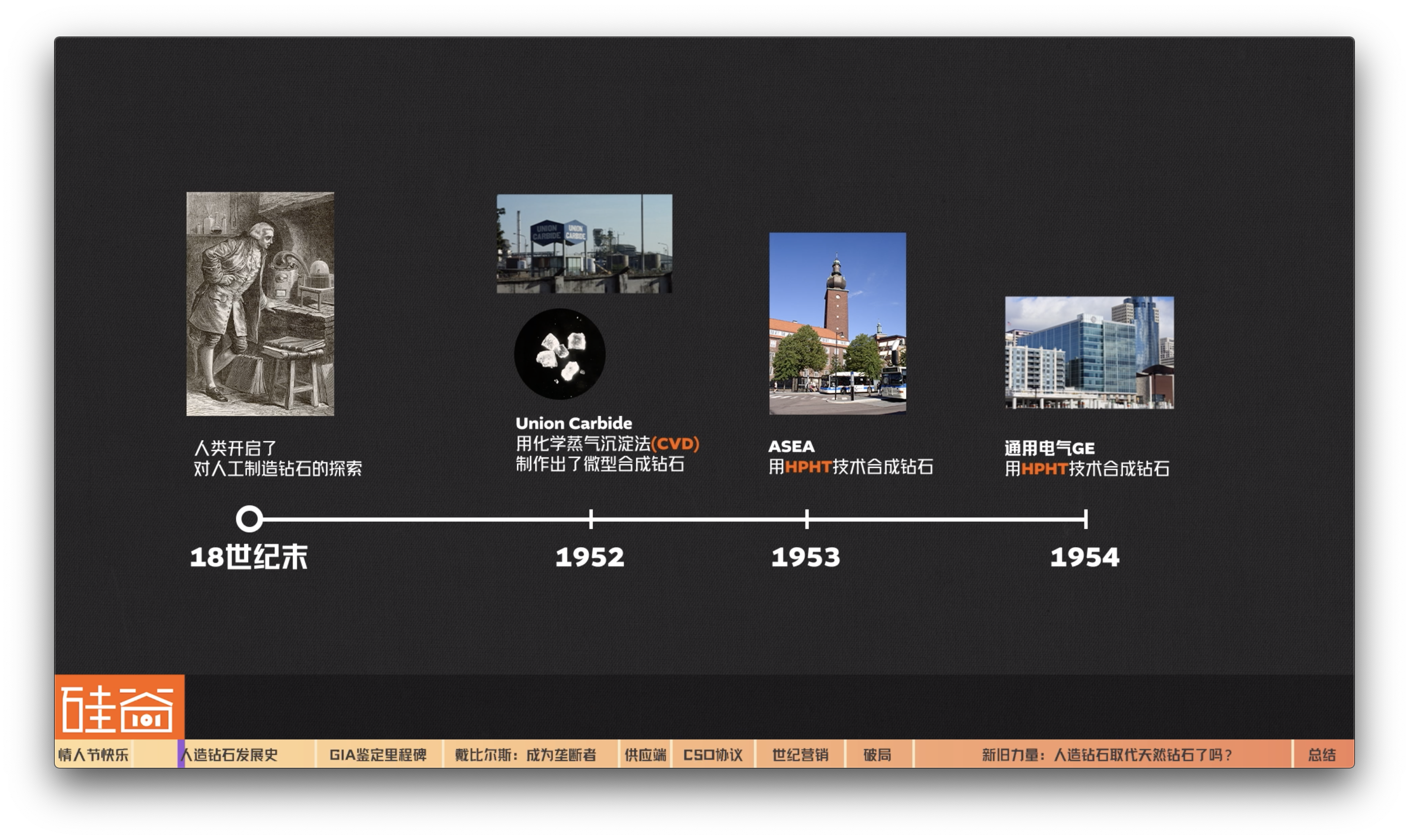 而从此之后,人类开启了对人工制造钻石的探索。而这一探索,就是上百年。直到20世纪50年代,突然有了第一次的技术突破。