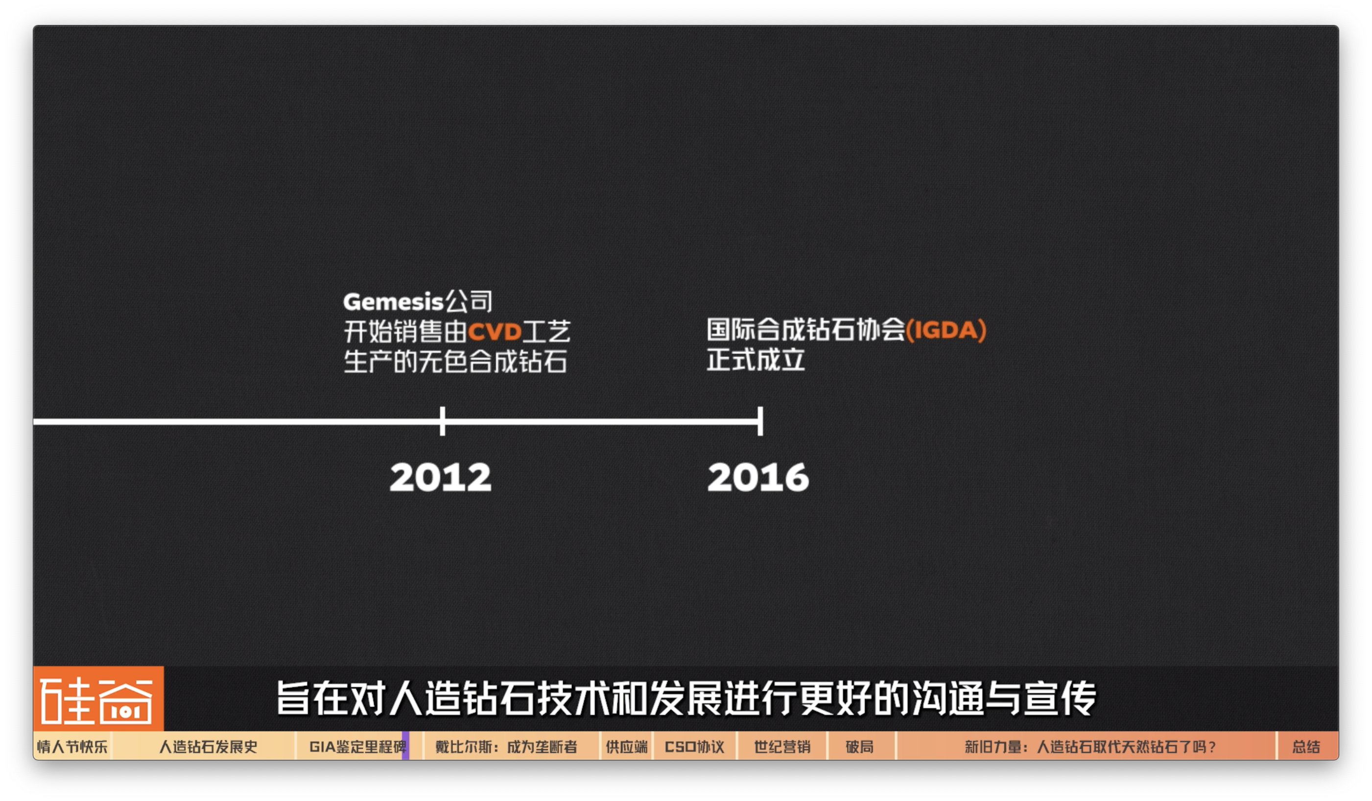 2016年,国际合成钻石协会(IGDA)正式成立,总部设在美国,旨在对人造钻石技术和发展进行更好的沟通与宣传,同时进行更加统一规范的术语和行为指引,从而促进整个实验室人造钻石行业的发展。