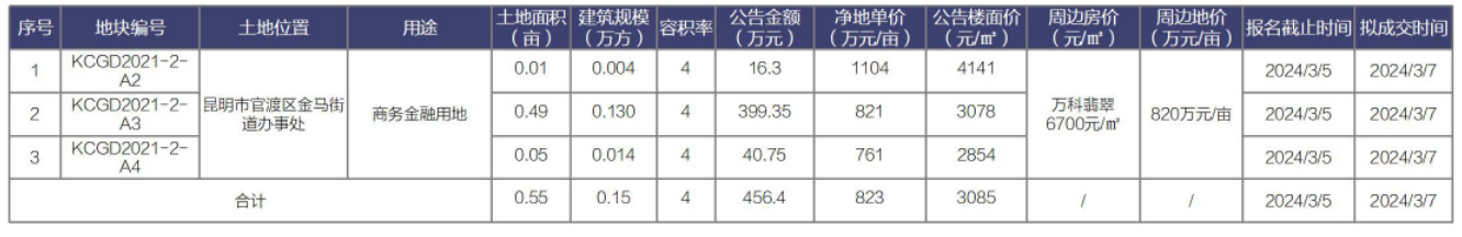 土地方面,官渡区推出3宗商业用地供应,总建面0.15万㎡,起始楼面价位3085元/㎡。