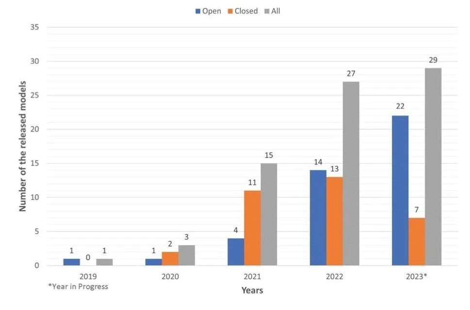 当像GPT-4这样的先进大模型不公开技术细节和模型,只提供服务的时候,这给很多想要入局大模型的科创企业带来了不小的挑战。以往人工智能领域有着浓厚的开源氛围,大家乐意把最新的模型代码分享到GitHub这类网站上,所以其实AI创业的门槛并不是非常高,因为核心技术和模型都是公开的,只需要稍微修改一下模型,拿自己的数据训练一下,就能得到一个新的垂直领域的AI产品。