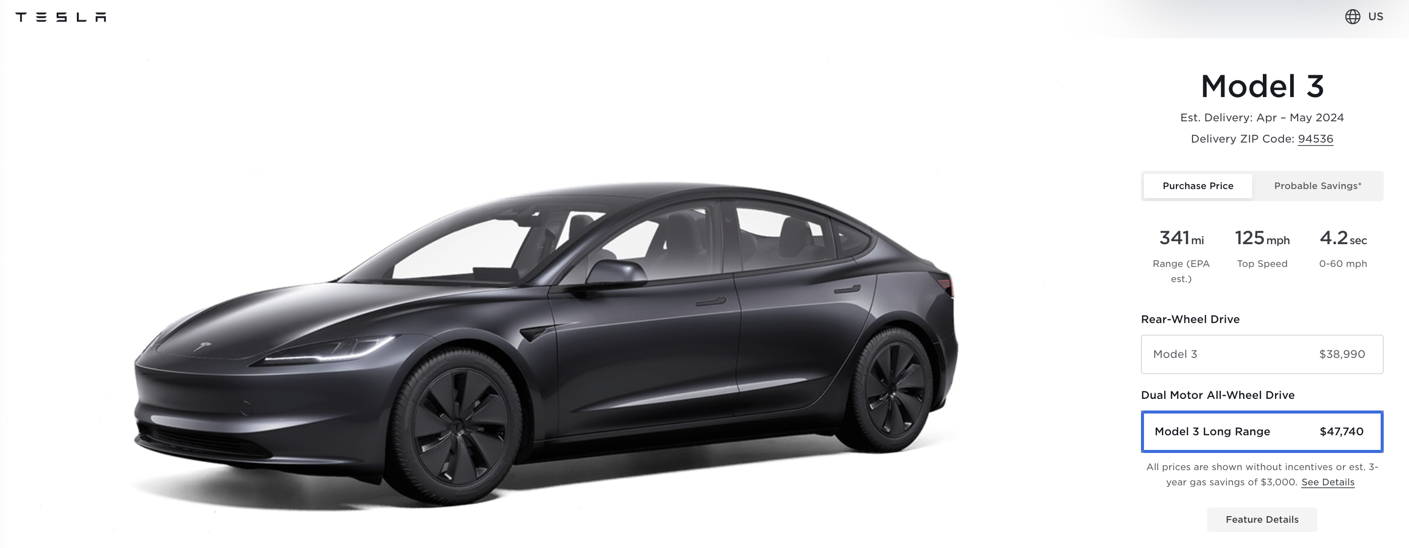据特斯拉美国官网,Model 3长续航版价格上调250美元至47,740美元。
