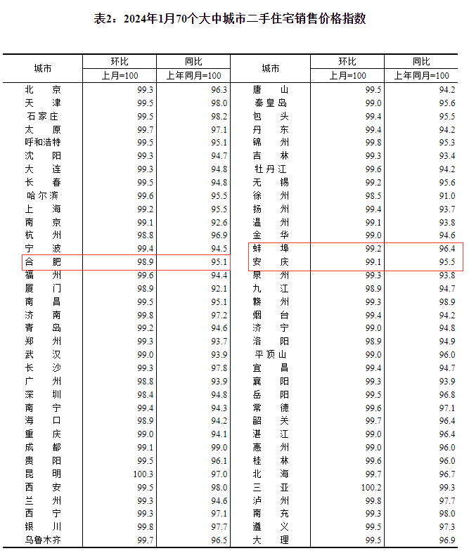 安徽纳入统计的合肥、蚌埠、安庆3市中:新建商品住宅方面,合肥、蚌埠、安庆环比和同比均下跌;在二手房市场,三市环比和同比均呈下跌状态,其中,合肥同比下降4.9%。