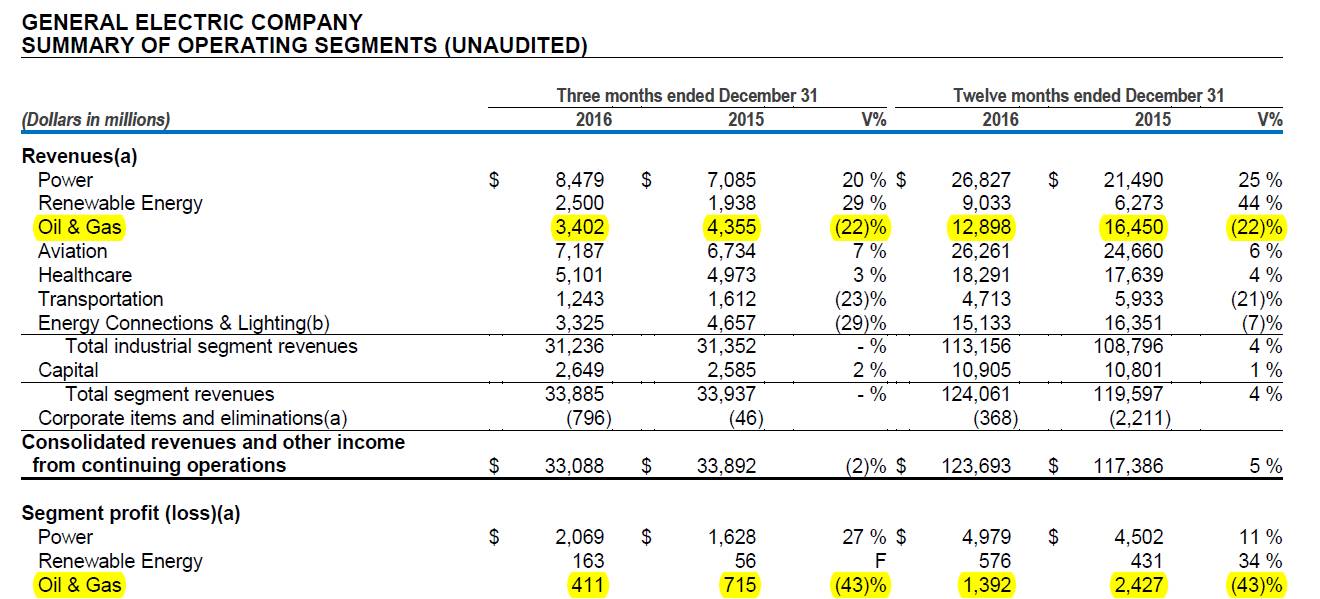 年关来临,各家公司也陆陆续续交出了2016年的成绩单,斯伦贝谢亏损超100亿、石化油服预亏160亿、中海油服预亏117亿(详见中海油服探底预亏117亿 静候石油业转机的到来)…2016可能是油服最萧条的一年了,但也有独善其身者,2016年实现与贝克休斯世纪大合并的GE油气就领跑全行,实现盈利近百亿。