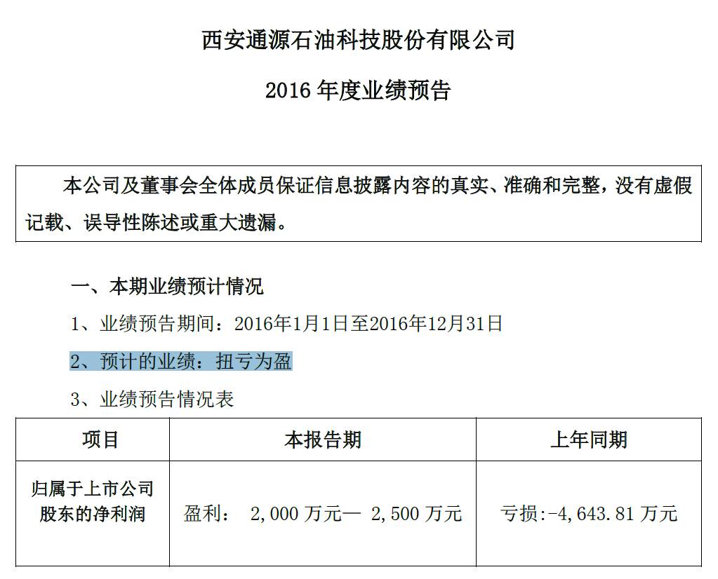 通源石油实现扭亏为盈,预计盈利将超过2000万。