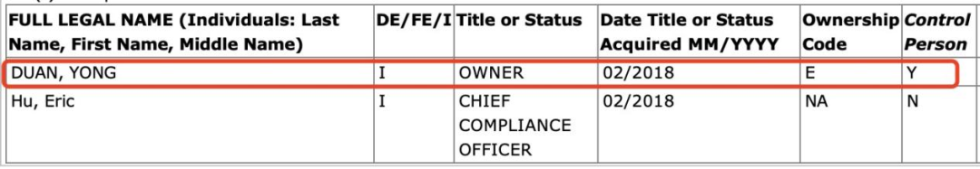 从H&H提交至SEC的文件来看,机构目前有两名主要员工——Yong Duan和Eric Hu,可以看出是两个华人名字。其中,Yong Duan是H&H的实际控制人,持股超75%;Eric Hu则是机构的首席合规官。