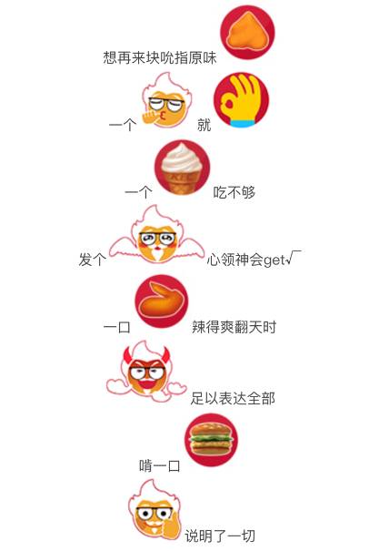 为了赢得小朋友的欢心,肯德基还推出托马斯小火车、功夫熊猫阿宝、“六大国漫英雄”、哆啦A梦等漫画卡通形象的套餐和手办。在7月17日“世界emoji表情日”当天,肯德基还推出了“K-emoji”系列表情图像,实力圈粉。