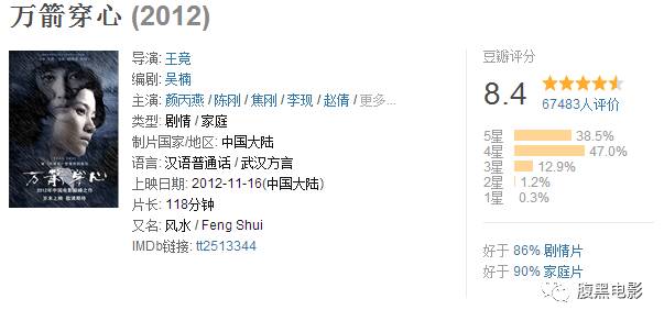 豆瓣评分8.4,是难得的国产上乘作品。好于86%的剧情片,好于90%的家庭片。