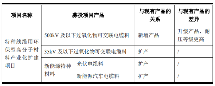 未来超高压、特高压将是跨区域输电的主要方式。据招股书披露,目前太湖远大尚不具备110kV、220kV、500kV等高压及超高压过氧化物可交联电缆料的生产能力。虽然太湖远大表示,在后续发展中,公司产品将在电压等级方面从中低压不断向高压和超高压发展,但从本次IPO拟投入的项目来看,公司在近两年半内更倾向于将资金投入到35kV及以下过氧化物可交联电缆料和新能源特种材料的扩产。