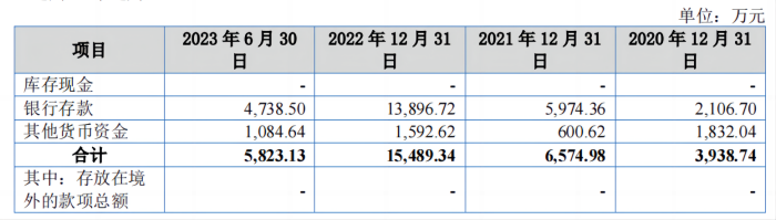 从招股书信息来看,公司报告期内货币资金存量较少,分别为3938.74万元、6574.98万元、1.55亿元和5823.13万元。
