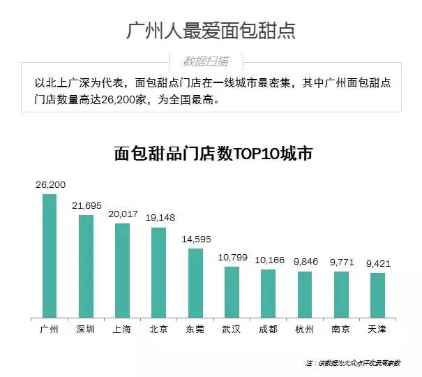 3. 面包甜点商铺在一线城市更为集中,而广州是最热爱甜点的城市;