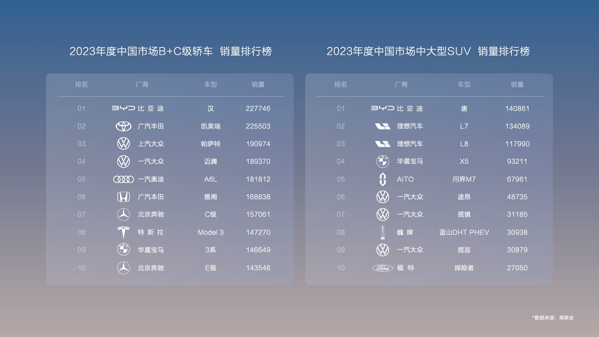 长期以来,中高端市场是中国汽车市场的“必争之地”。以2024年1月为例,B级轿车+B级SUV市场份额占比逾30%。然而,这也是日系、德系合资品牌垄断的重点细分市场,"日系三剑客”、“德系双雄”等昵称由此而生,其原因之一在于新能源渗透率较低。