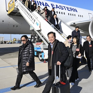 3月3日下午,在沪全国人大代表抵达北京,出席即将召开的十四届全国人大二次会议。