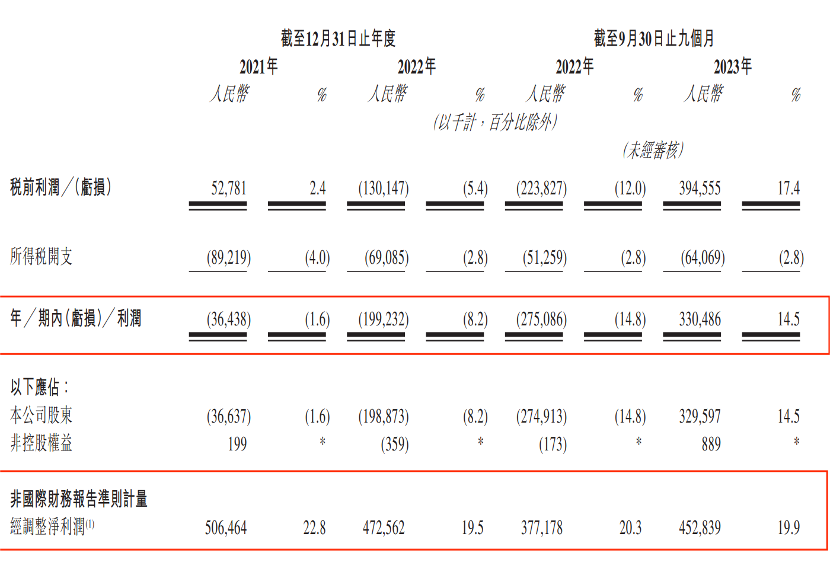 中和农信的规模越来越大,但净利润却没有跟上步伐。报告期内,公司的净利润分别为-3643.8万元、-1.99亿元、3.30亿元。不过,非国际财务报告准则计量的经调整净利润全部转正,分别为5.06亿元、4.73亿元、4.53亿元。