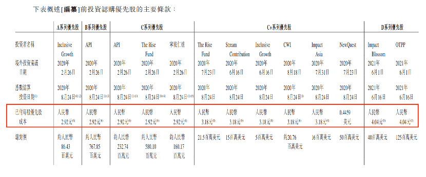 招股书显示,优先股的持有人包括全球最大私募股权投资机构美国德太投资集团(TPG)、蚂蚁集团全资子公司API、安大略省教师基金会全资子公司OTPP、中金公司全资子公司CWI、淡马锡等数家知名资本机构。