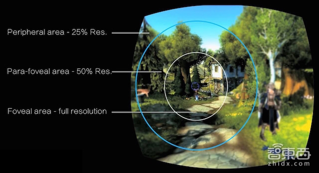 人眼观看世界时是选择性聚焦的,即眼神聚焦中心是清晰的,其他地方则逐渐模糊。而现有的VR技术则是全局清晰渲染的,电脑会把所有的场景都清晰地渲染出来让用户去观看,过程中很大一部分清晰的像素都被浪费掉了。这样的全局渲染给计算机运算带来很大的压力,用户需要配备极高性能的显卡才能得到画面优秀的VR系统。