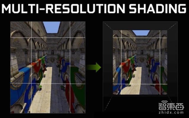 此外,曾与SMI合作的芯片巨头英伟达也推出了类似注视点渲染技术的MRS(Multi-Resolution Shading)多分辨率渲染技术,焦点区域会以完整的高分辨率进行渲染,边缘则以更低质量进行渲染。但是英伟达的MRS技术是以屏幕中心为聚焦点,也就是说认为头是转动的而眼睛是不转动的,当眼睛转动的时候会出现清晰度偏差。