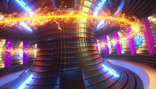 托克马克被誉为“人造太阳”,是磁约束核聚变装置的一种,中央是一个环形的真空室,外面缠绕着线圈,在通电时内部会产生巨大的螺旋形磁场,将其中的等离子体加热到很高的温度,以达到核聚变的目的。