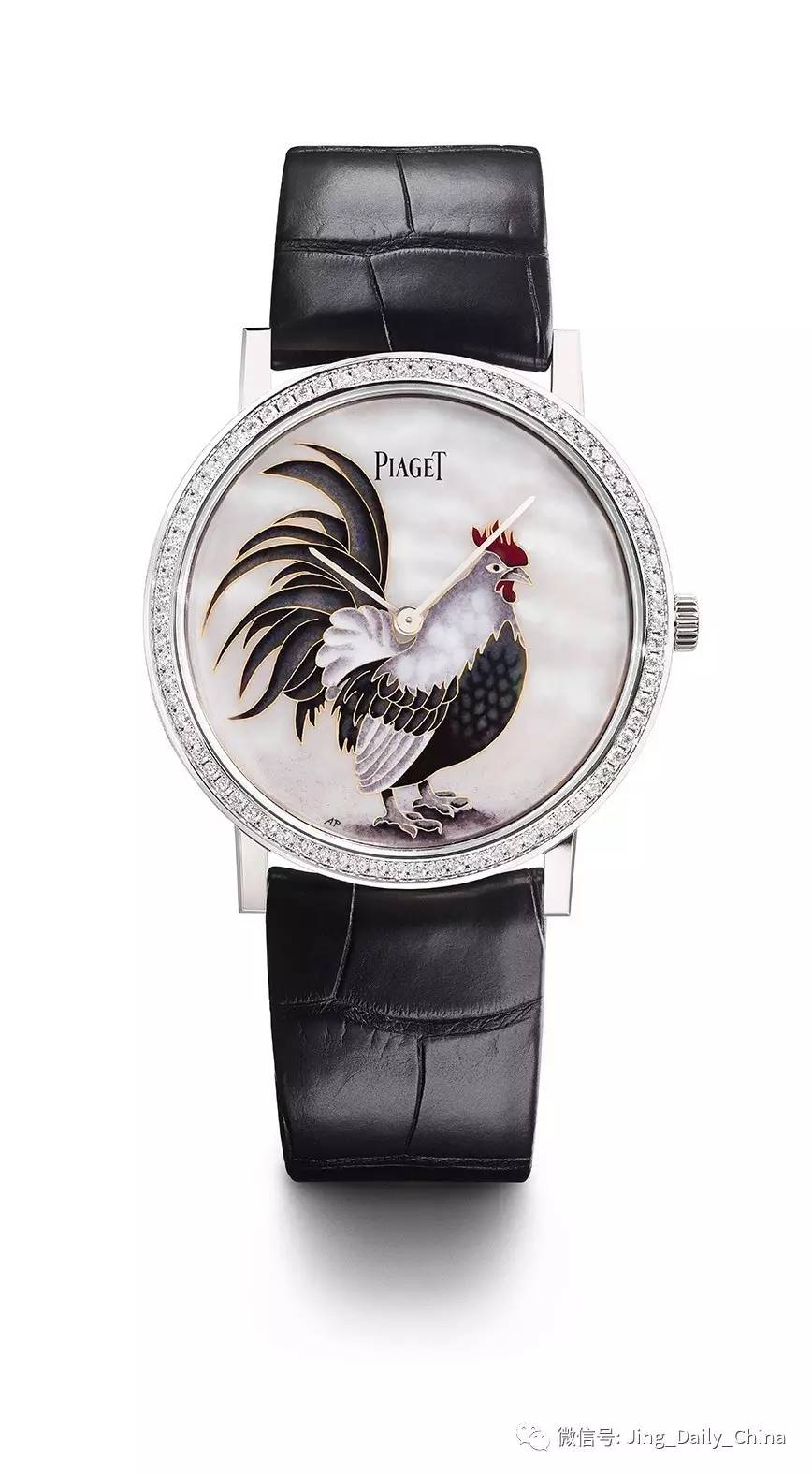 亮点: 这款Altiplano 手表系列是又一款强调了métiers d’art 珐琅手艺 (cloisonné 技术). 这款限量38块的手表——是由18克拉重的白金配合38毫米表盘外壳以及超薄伯爵430P机械机芯和78颗brilliant级切工的钻石组成——提供也许以是中国十二生肖鸡年为主题的最完美的诠释。珐琅公鸡主旨造型的表盘,由AnitaPorchet——经常与伯爵合作的知名珐琅工艺艺术家操刀制作cloisonné珐琅工艺。是一块令人爱不释手的艺术品,提升主人的气质。