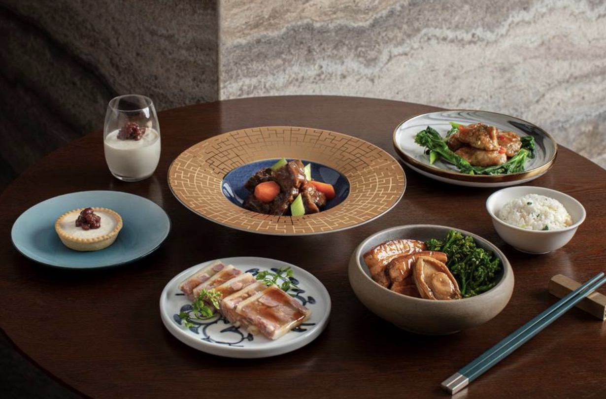 一系列雅致而富有创意的菜肴包括醋香水晶肴肉、碧绿川椒鲍鱼鸡球、玉树麒麟蒸鳕鱼、山楂果醋猪肋肉等。甜品则包括灵感源自传统甜品芝麻糊的黑芝麻挞配豆腐雪糕,以及红豆豆腐布丁等。乘搭国泰航空从香港出发指定长途航班的头等客舱及商务客舱旅客可享用这一系列佳肴。