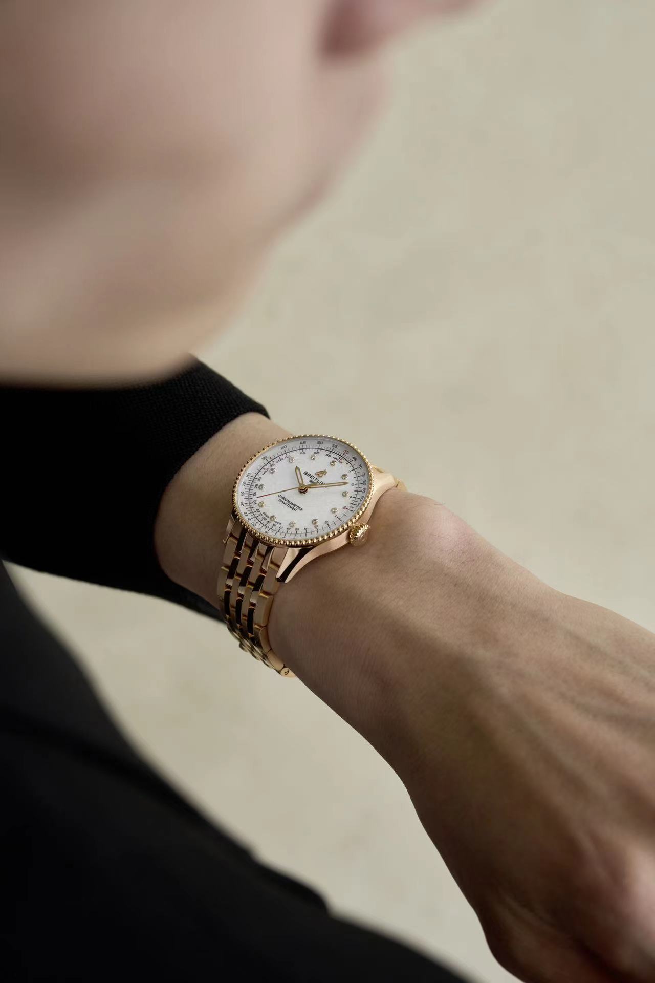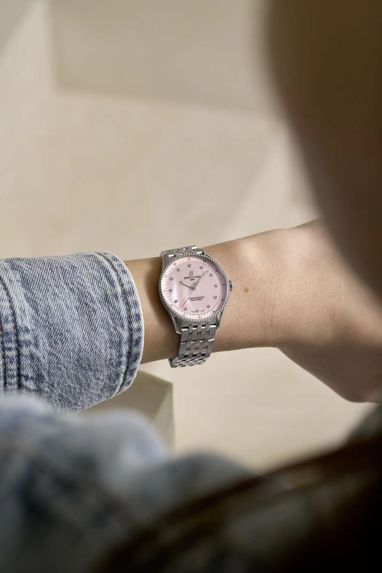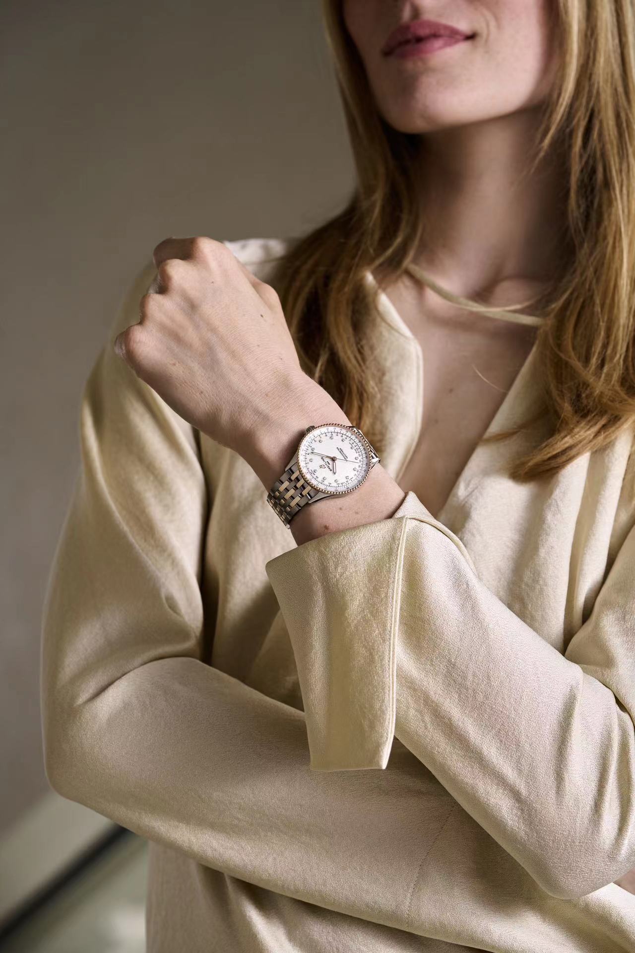 百年灵Navitimer航空计时32和36腕表,采用航空计时腕表独特的串珠表圈,搭配珍珠贝母表盘,为整体增添瑰丽光泽。表盘上标志性的环形飞行滑尺,伴随航空航天事业成就诸多非凡创举,如今化身佩戴者腕间的一个标志,象征着对自己人生之路的明确方向和规划。腕表尺寸精巧贴合女性手腕,色彩搭配选择多样,像她一样不被定义。