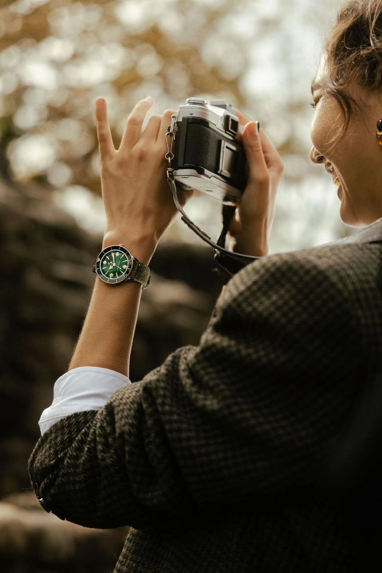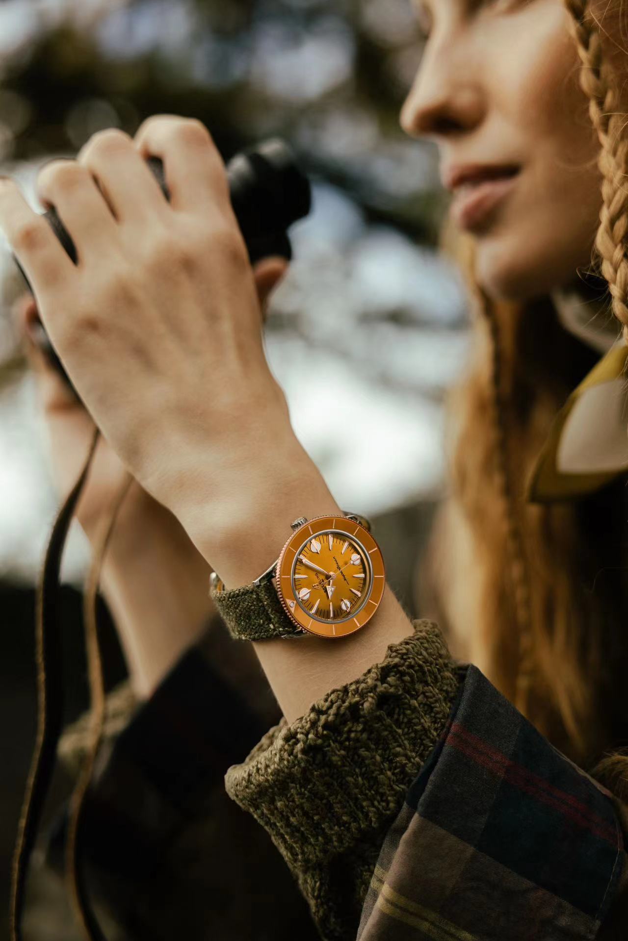 时间不仅只是一分一秒,也是一步一步。对她而言,人生从来不是轨道,而是广阔旷野,要恣意去探索世界的美。百年灵超级海洋文化腕表'57高地胶囊系列 (Superocean Heritage '57 Highlands Collection) 采用少见的斜纹软呢表带,丝绸及羊毛混纺令触感柔软舒适,腕表还另配一条金属编织表链以应对不同搭配与环境需求。大地色系为主的设计,点睛之处例如源自上世纪中叶的三角形时标,无不摩登复古。