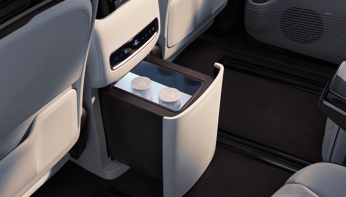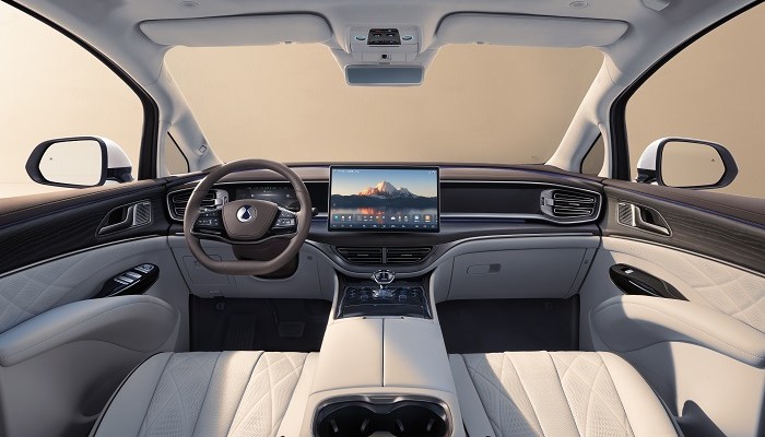 内饰更新一款米色颜色选项,中控屏进一步调大尺寸至15.6英寸,其余升级还包括搭载增强车机系统,引入游戏中心App等新功能。前排新增流媒体后视镜和副驾座椅调节功能,第二排标配小桌板和车载冰箱,后者升级至压缩机制冷,提高便利性和舒适度。