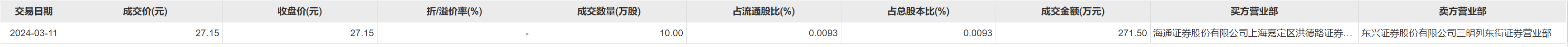 锦江酒店3月11日大宗交易成交10万股,成交额271.5万元,占当日总成交额的0.69%,成交价27.15元,较市场收盘价27.15元持平。