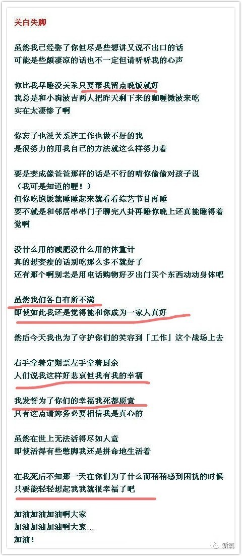 再来看看作者结婚15年后又写的一首《关白失脚》的歌词,真的希望你们能仔细看完,结婚后很真实的场景,相必韩寒是怎么都体会不到这个的,毕竟您老婆“贤惠”的很。