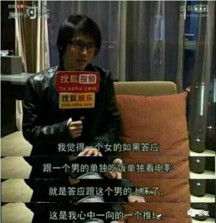 对了,他还有一个“女生如果答应跟一个男的单独出去吃饭看电影,就是答应跟男的上床”的理论,天雷滚滚啊,有这思维的男的真的不是太自作多情吗?